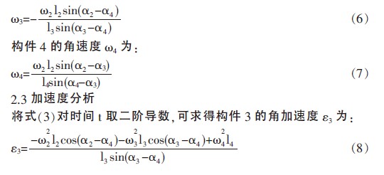 將式(3)對時(shí)間t取一階導(dǎo)數(shù),可求得構(gòu)件3的角速度ω3 為: