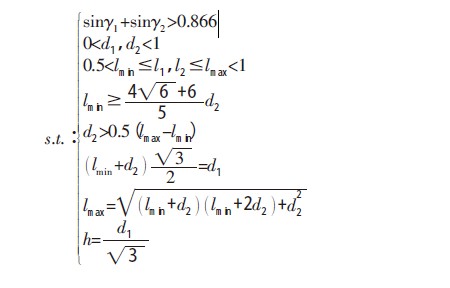 移動副有一定的運動范圍,對于液壓缸等還存在一段無法運動,即:l1 和l2的值應該在一個范圍之內,且其上限和下限之間還存在一定的約束??梢悦枋鰹椋?