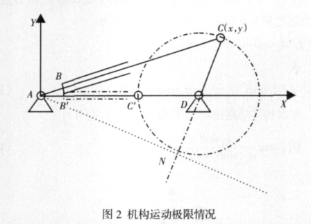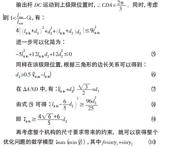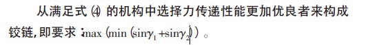 在機構設計中,一般通過限定機構的最小傳動角來確保機構具有良好的傳力特性,即要求: