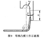 另外,應注意一點就是預彎凸模3、預彎凸模4 和彎圓凸模5在圖9的垂直方向大于被彎曲零件尺 寸,一般在結構空間允許的情況下,單向加大量取 0.5~ 2mm 。