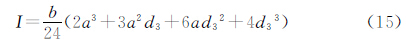 在加工柔性鉸鏈時(shí),切口圓弧軸心線的偏離情況較為復(fù)雜,主要有兩種情況,一種是兩圓弧的軸心線互相平行,具有共同的垂直度誤差φ,在具體的微位移機(jī)構(gòu)中,這會導(dǎo)致不對稱的應(yīng)力狀態(tài),可能引入機(jī)構(gòu)位移耦合誤差。第二種是兩圓弧軸心線不平行,從而導(dǎo)致鉸鏈截面發(fā)生變化。我們考慮第二種情況,當(dāng)軸心線左右偏離時(shí)所得截面和上文1.2節(jié)所述類似,而當(dāng)其中一條軸心線前后偏離時(shí)的誤差d3如圖5所示,取出圖5中間鉸鏈截面,如圖6所示。