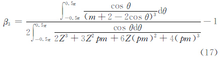 對p=(-0.3,0.3)范圍內(nèi)的誤差β3進(jìn)行數(shù)值積分和曲線擬合,得到不同m 參數(shù)值下,軸心線垂直度誤差系數(shù)p 引起的剛度誤差β3(p)為
