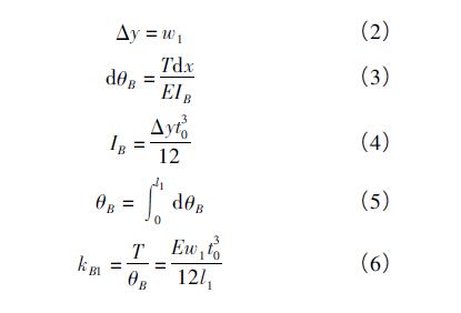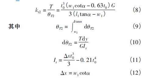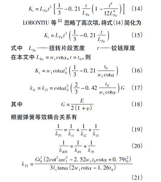 (2)當(dāng)w1<y<l1tanα時(shí),Δx長(zhǎng)度不小于鉸鏈厚度t0,則鉸鏈扭轉(zhuǎn)等效剛度為