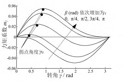 (2) γ∈[0, β]時,轉(zhuǎn)角γ 增大,mγ從零先增大, 至拐點(diǎn)角度γ0處取最大值mγmax,后又逐漸減小。