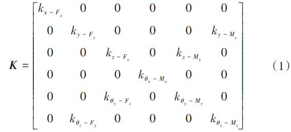 根據(jù)胡克定理,F(xiàn)=Kζ,梁的六自由度剛度矩陣可表示為: