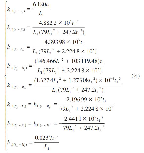 綜上,半輪型柔性鉸鏈中各子柔性單元剛度矩陣在末端坐標系{O3,X3,Y3,Z3}中的整合總剛度矩陣為:
