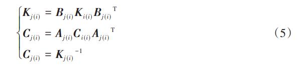 式中:A、B為旋量伴隨變換矩陣,滿足上述式中A-1=BT;j (i)為坐標系{oi}中的剛度矩陣關(guān)于坐標系{oj}的表達。